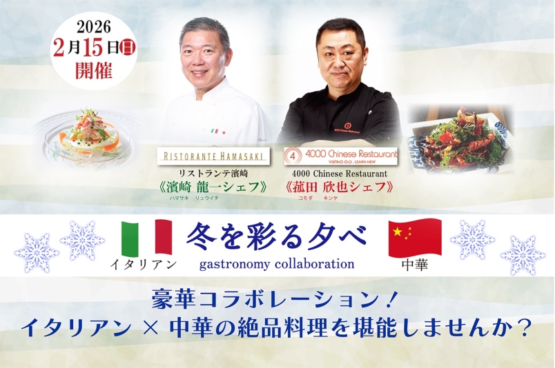 【冬を彩る夕べ】2026/2/15(日)イタリアン・中華の絶品料理を一度に味わえる、豪華コラボイベント、開催いたします(11/10更新)